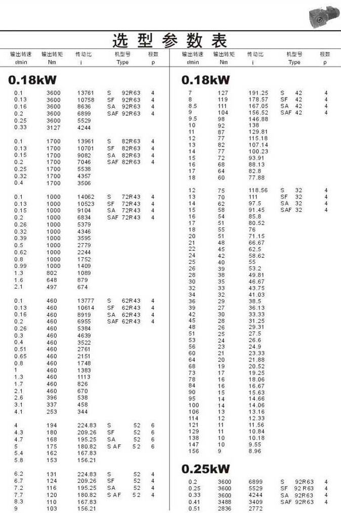 選型參數表0.18kW和0.25kW 76..