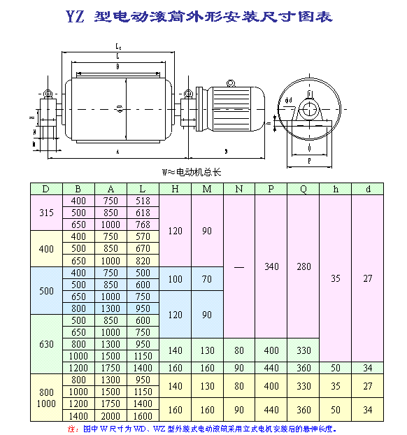(1)因目前外裝式電動滾筒尚未制定相關行業標準,本廠將該型號電動滾筒首位代號用W(“外裝”的首位漢語拼音)表示。外裝式電動滾筒外置電機可分為立式電機和臥式電機,用戶訂購時請加以說明;